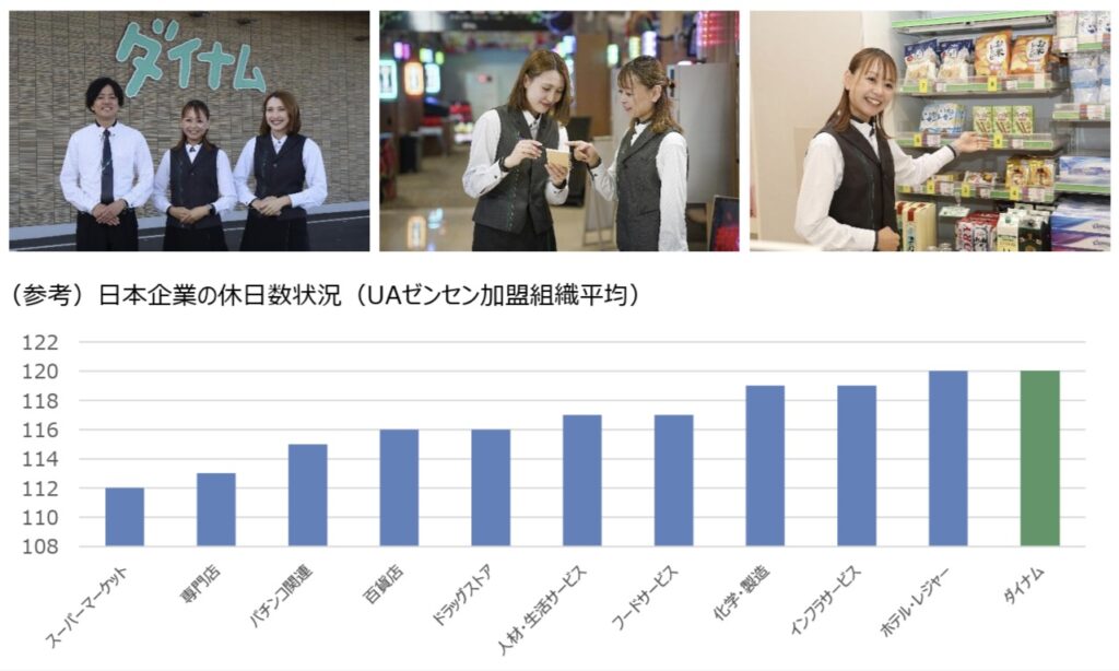 全国46都道府県にパチンコホールを展開する株式会社ダイナム(東京都荒川区)は、2026年4月1日から始まる新事業年度より、所定年間休日数を現行の117日から120日へ拡大することを発表した。